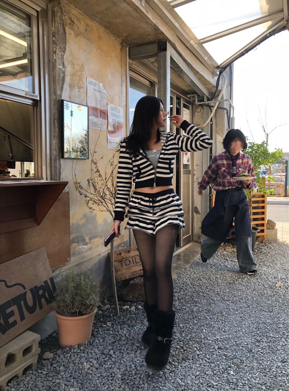 단가라 캉캉 스커트 (치마 바지 ver) 2color
