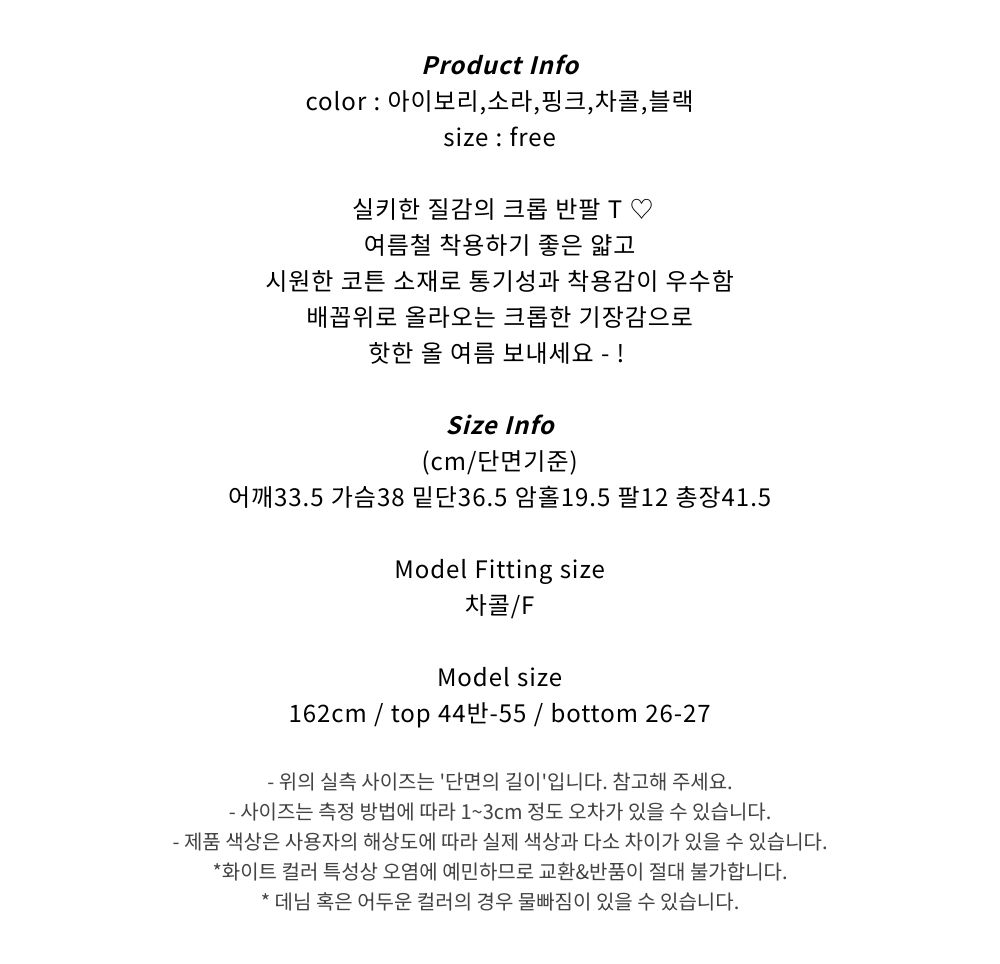 베이직 실키 크롭 반팔 티셔츠 (5color) 무지티