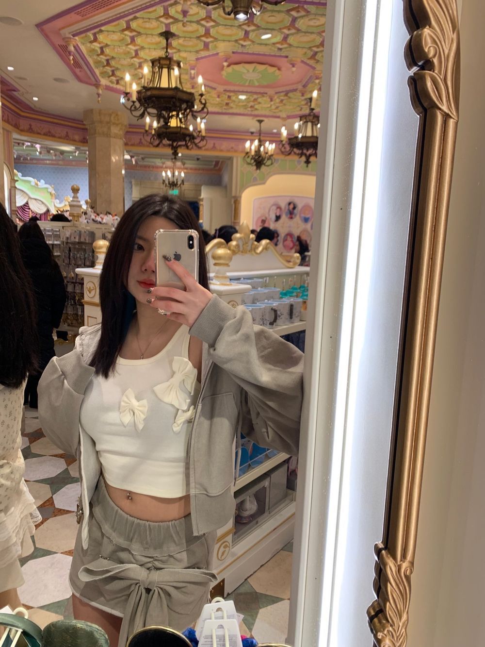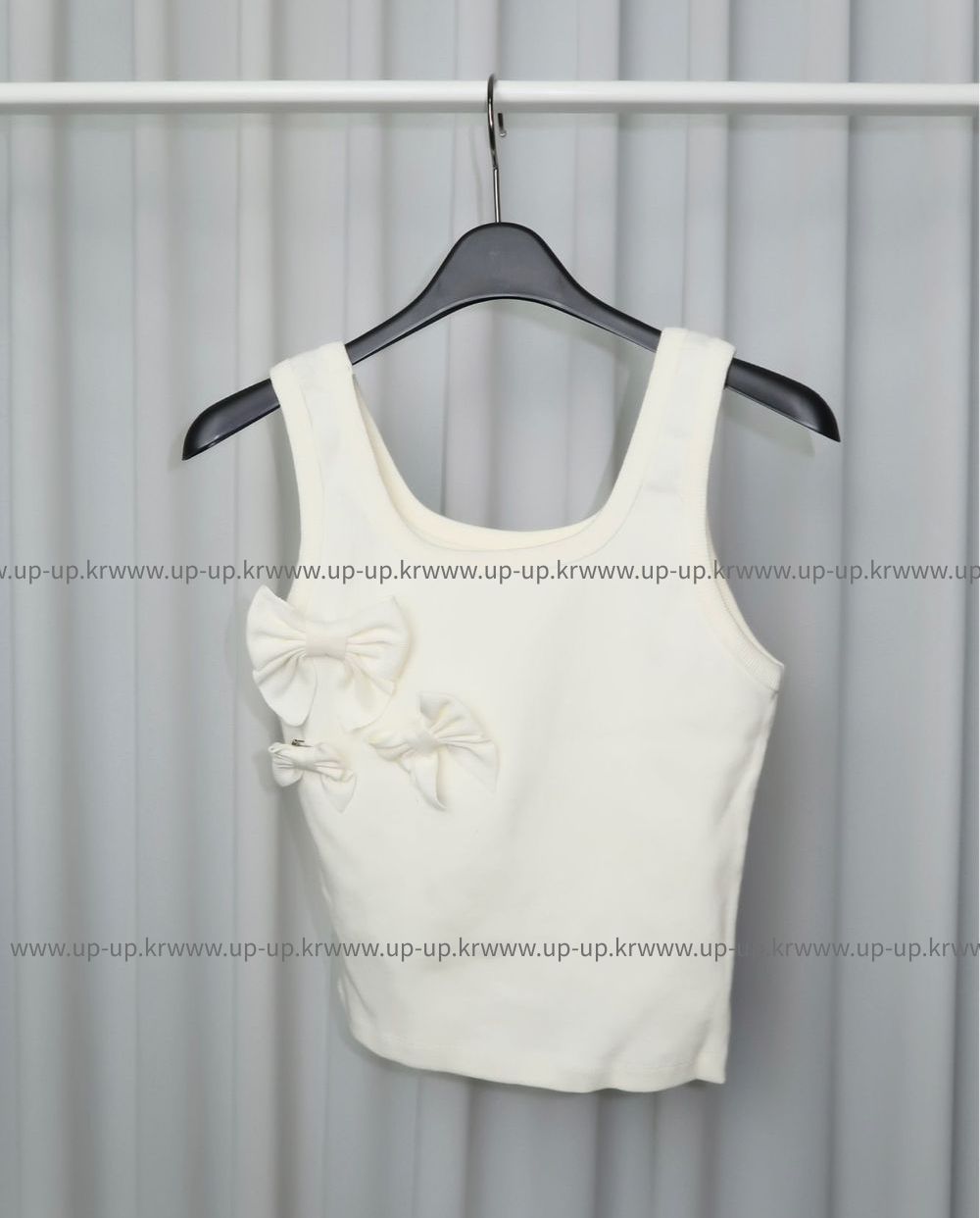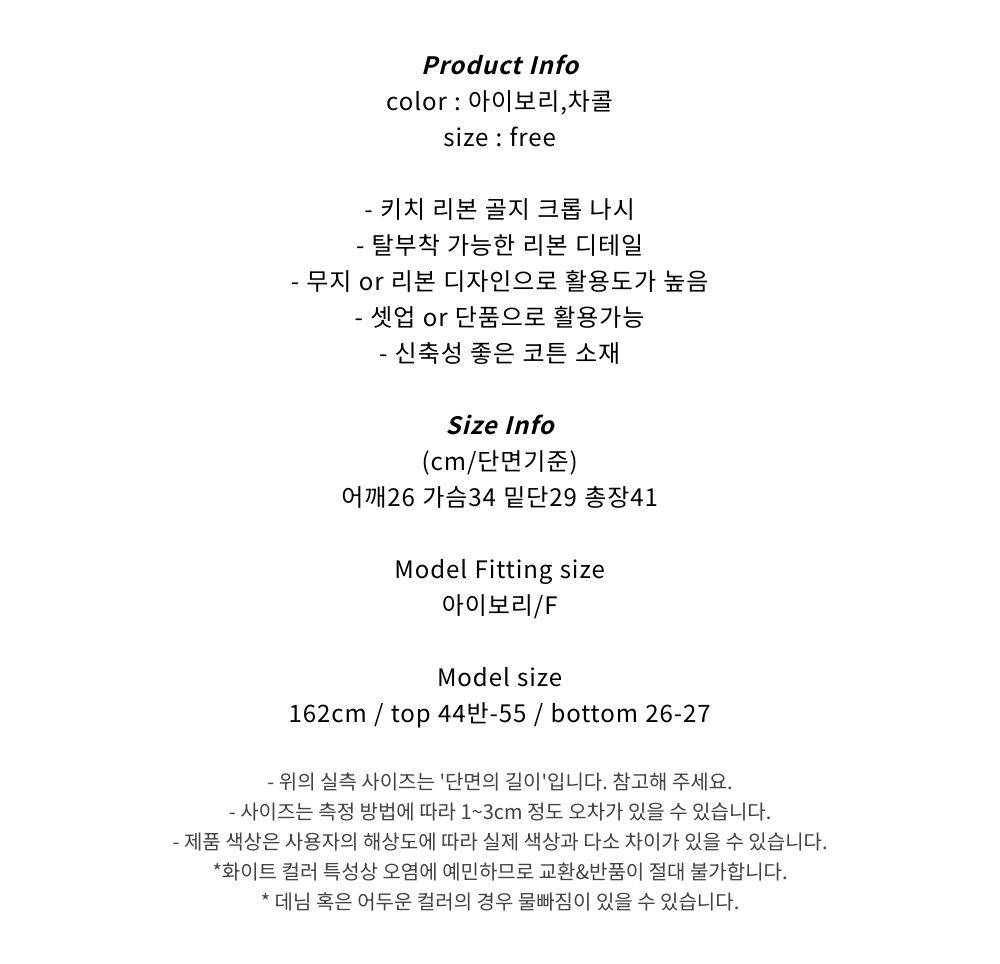 (탈부착O) 키치 리본 나시 크롭 탑 (2color)