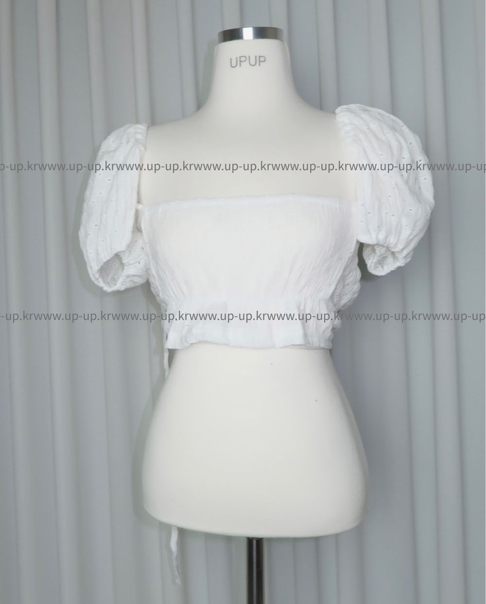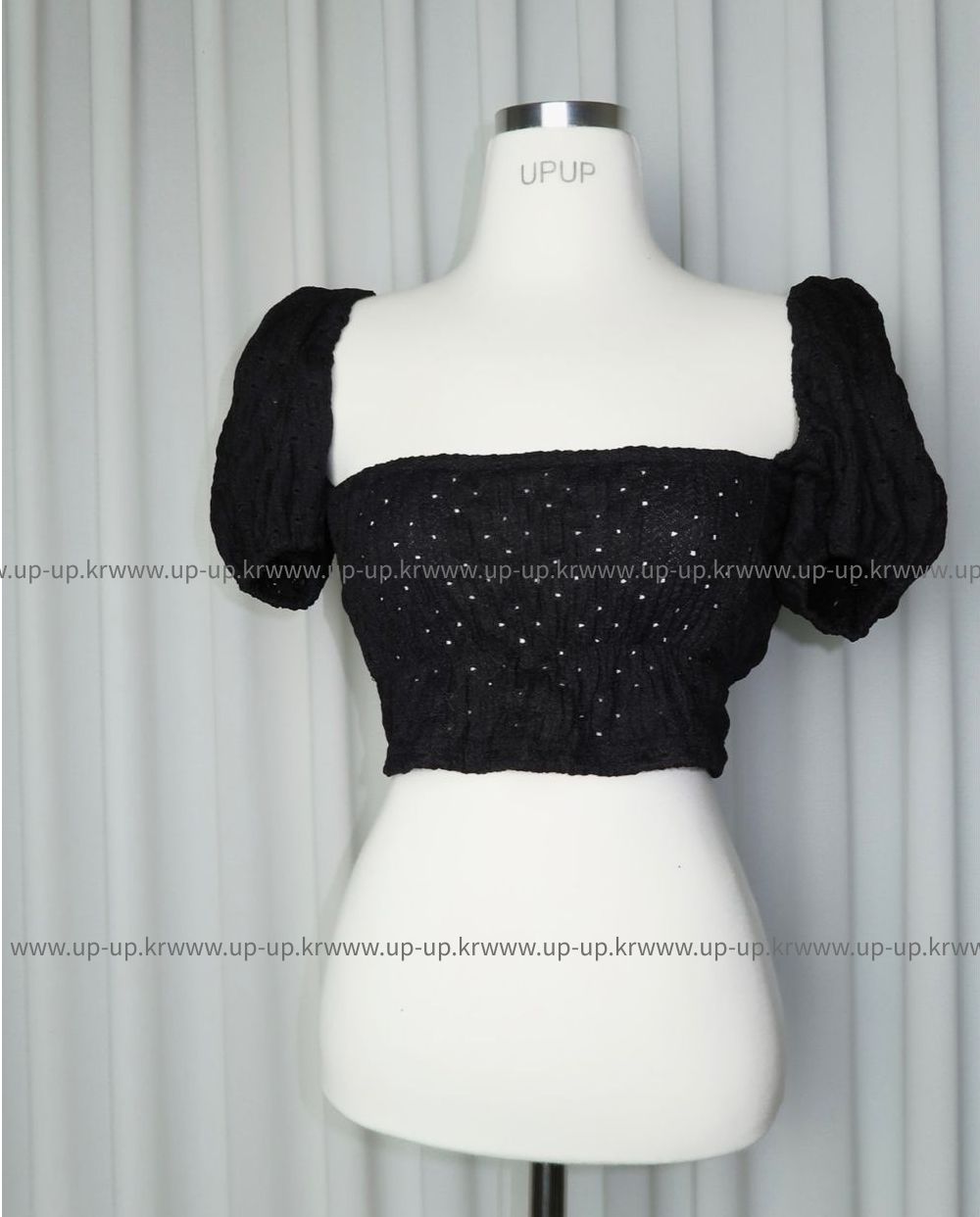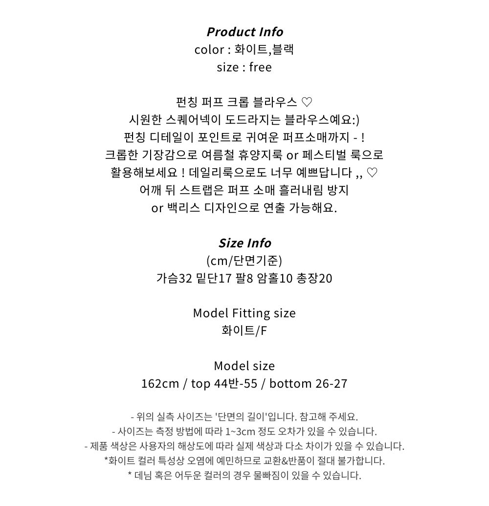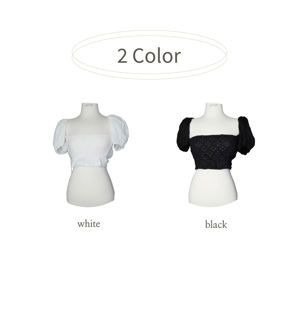 펀칭 퍼프 크롭 스퀘어넥 블라우스 탑 (2color)
