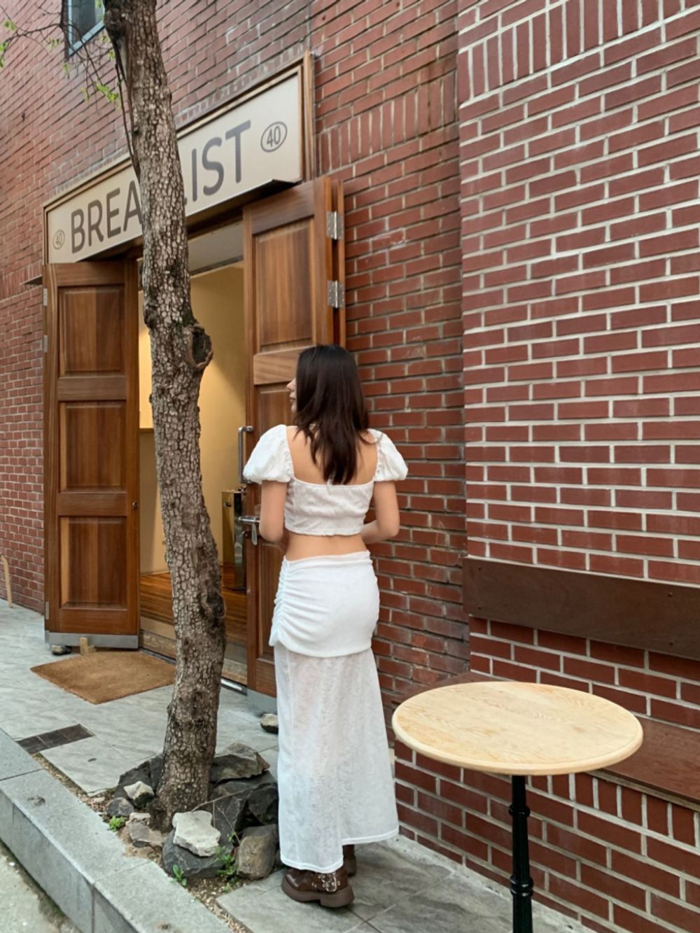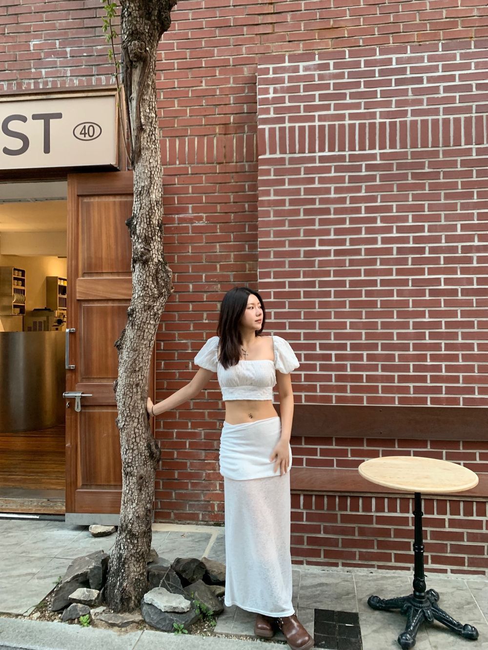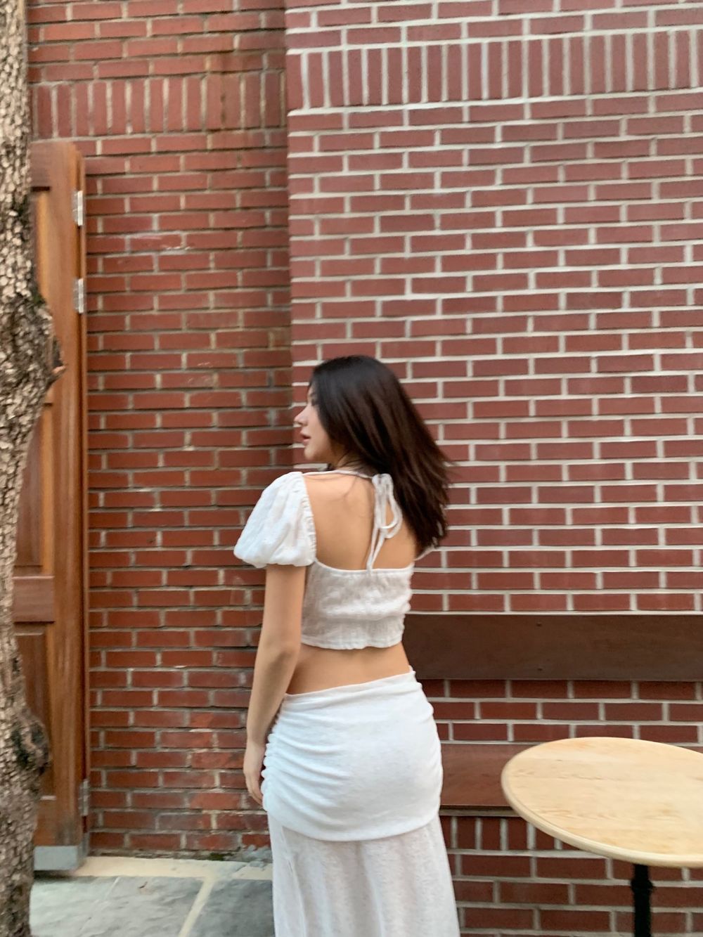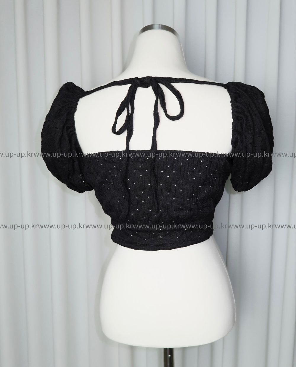 펀칭 퍼프 크롭 스퀘어넥 블라우스 탑 (2color)