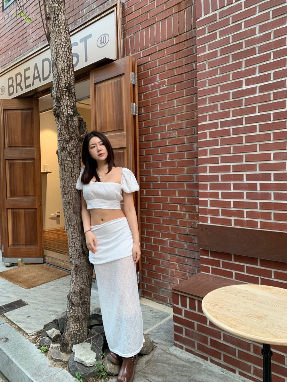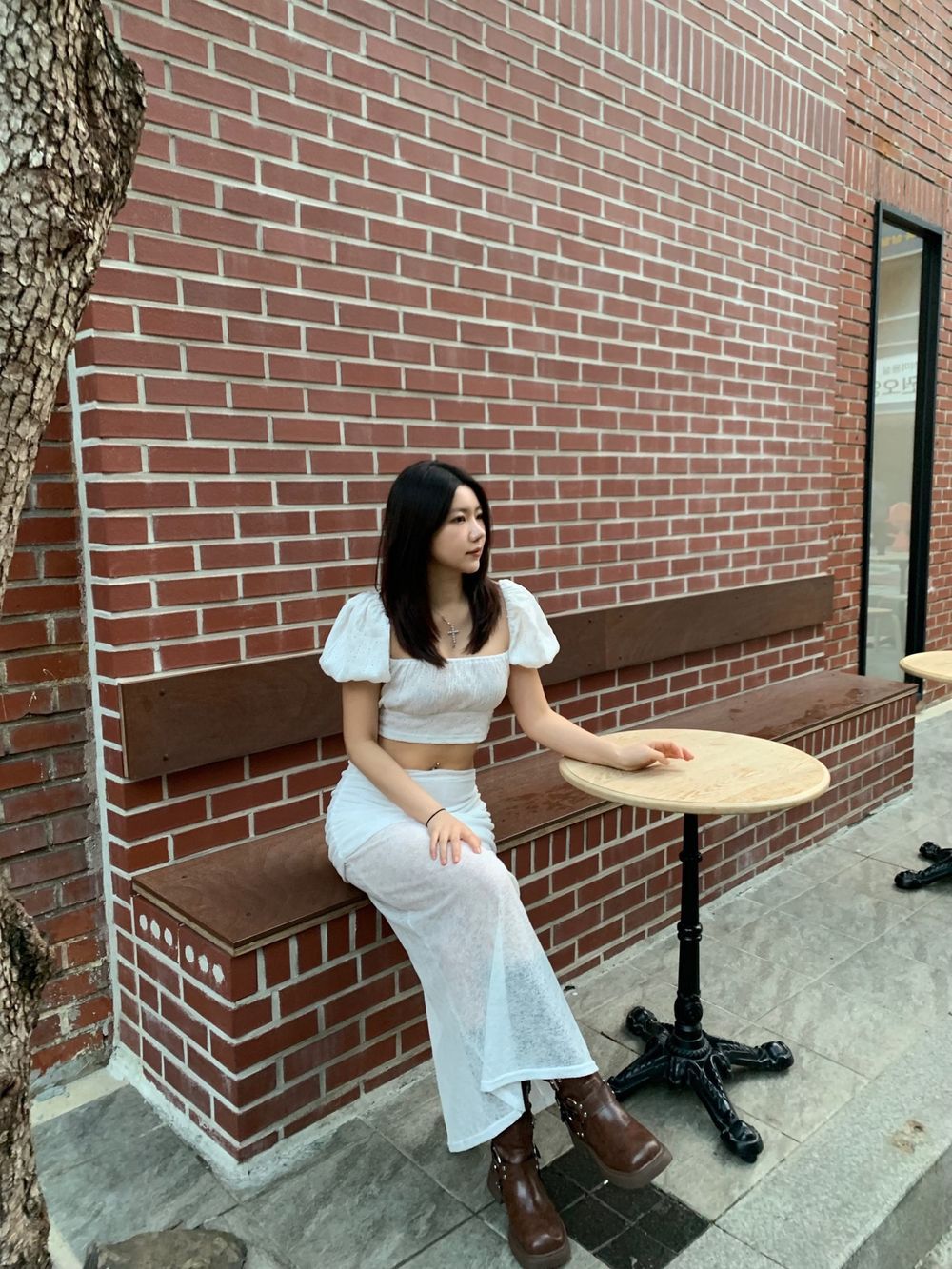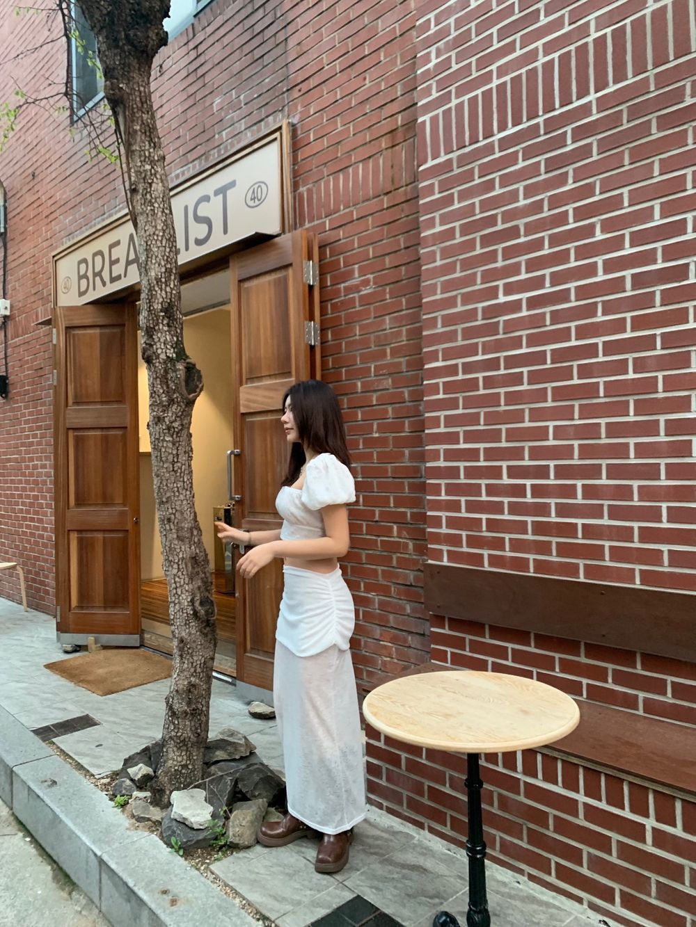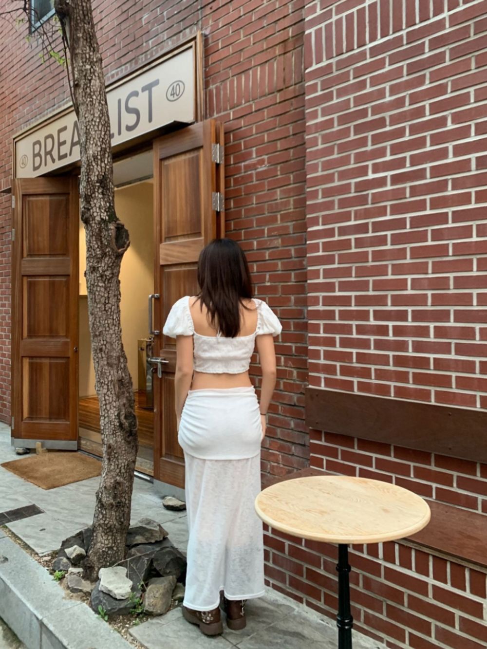 펀칭 퍼프 크롭 스퀘어넥 블라우스 탑 (2color)