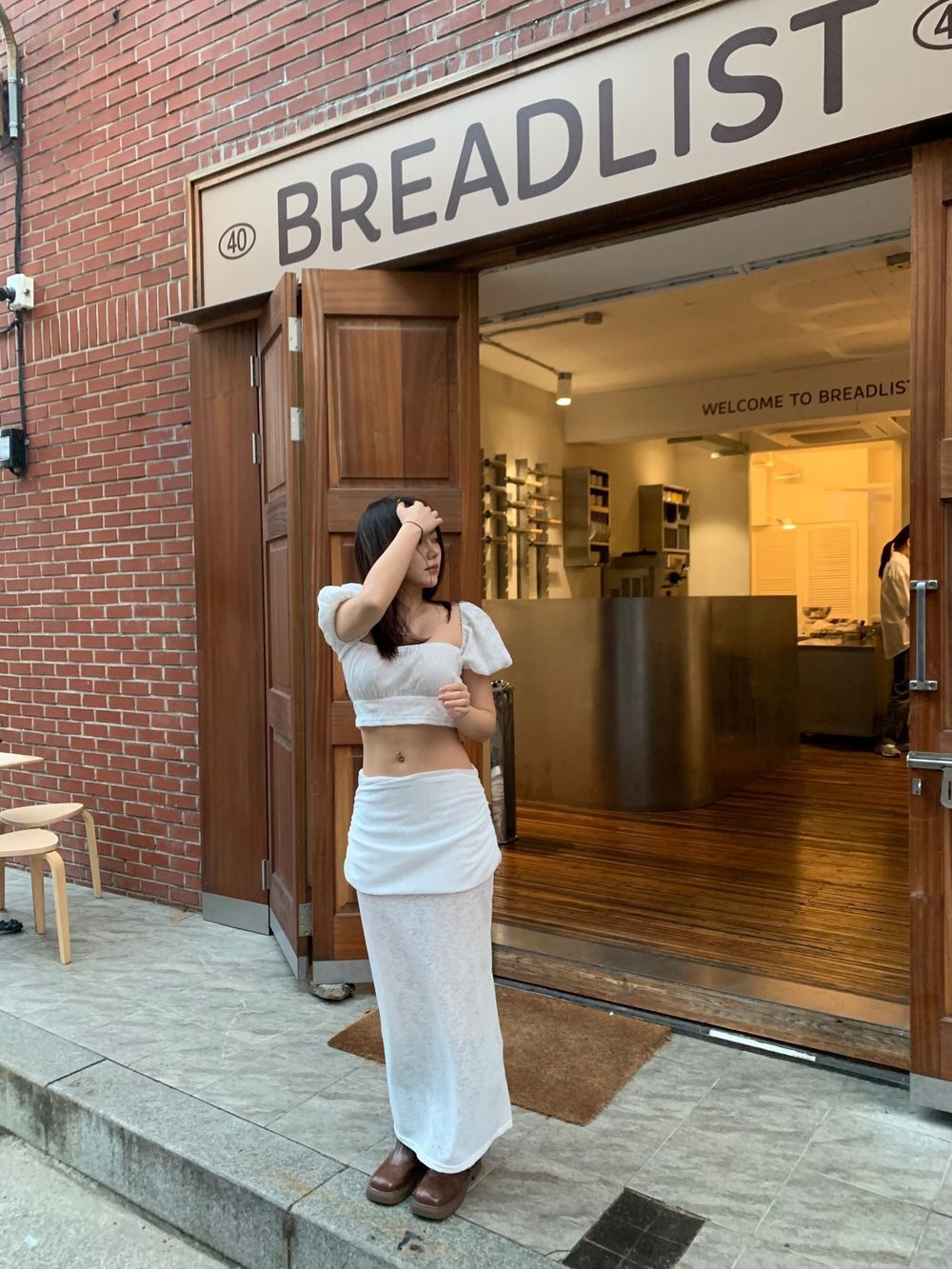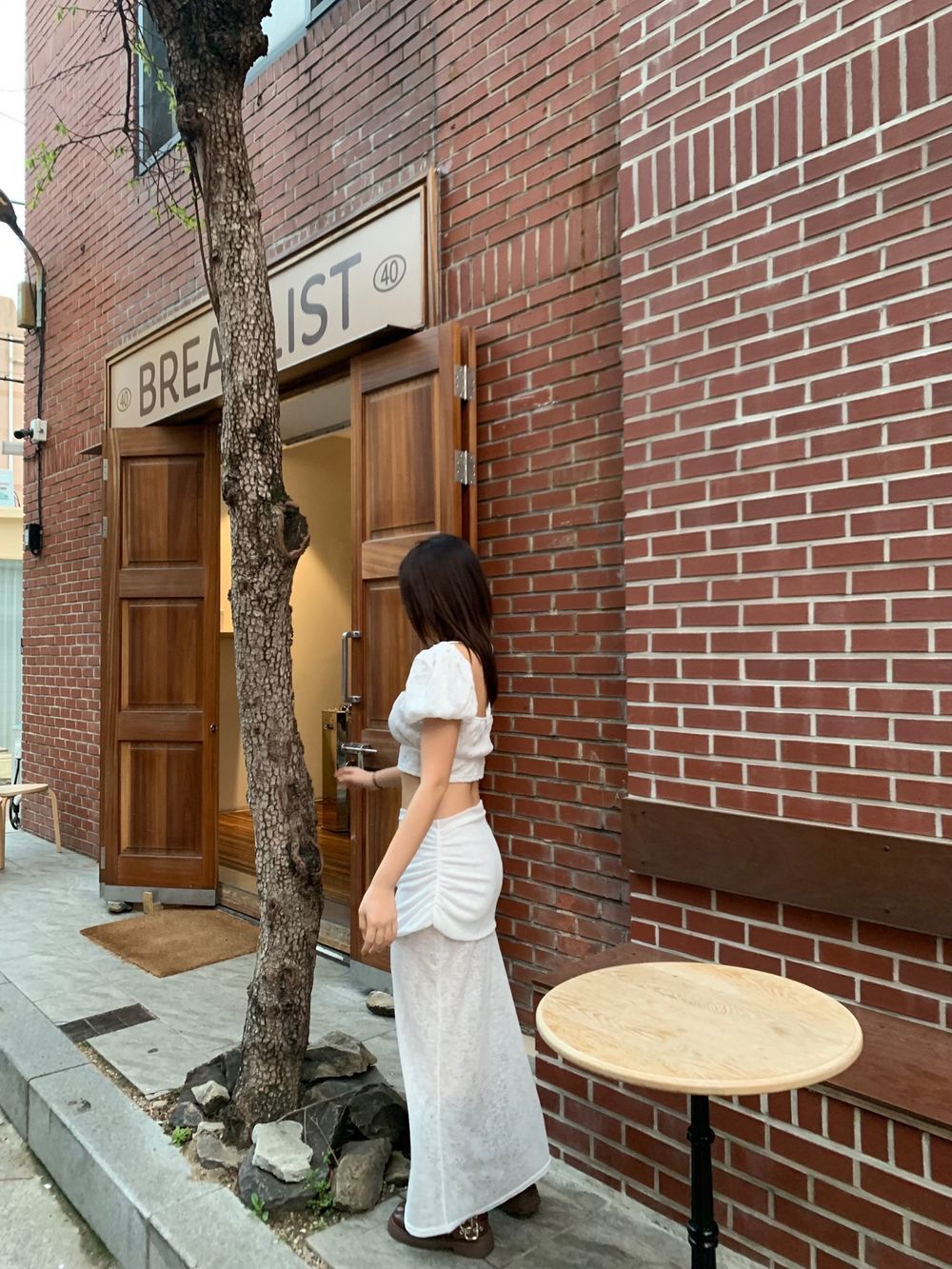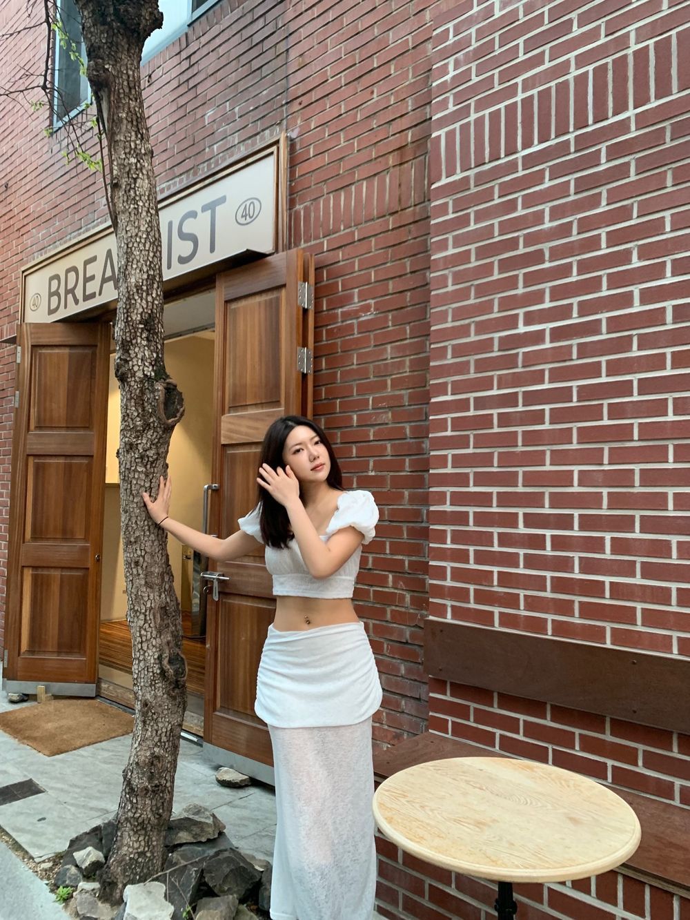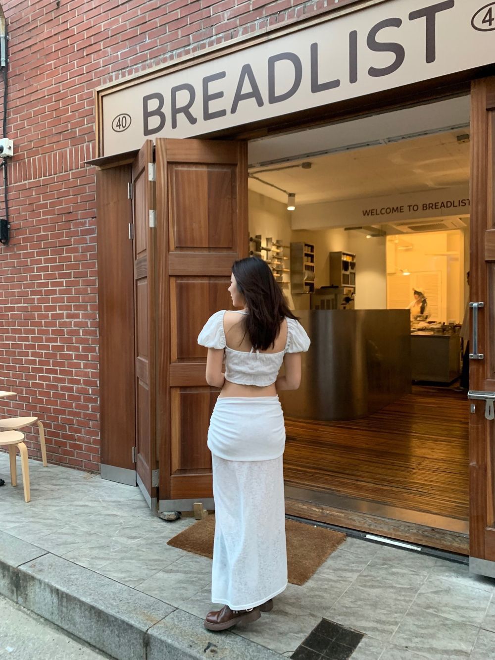 펀칭 퍼프 크롭 스퀘어넥 블라우스 탑 (2color)