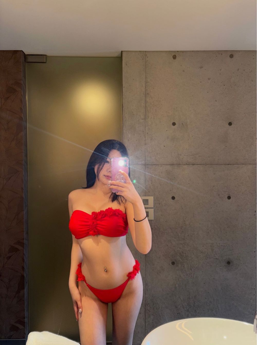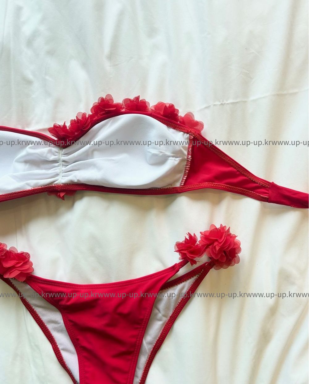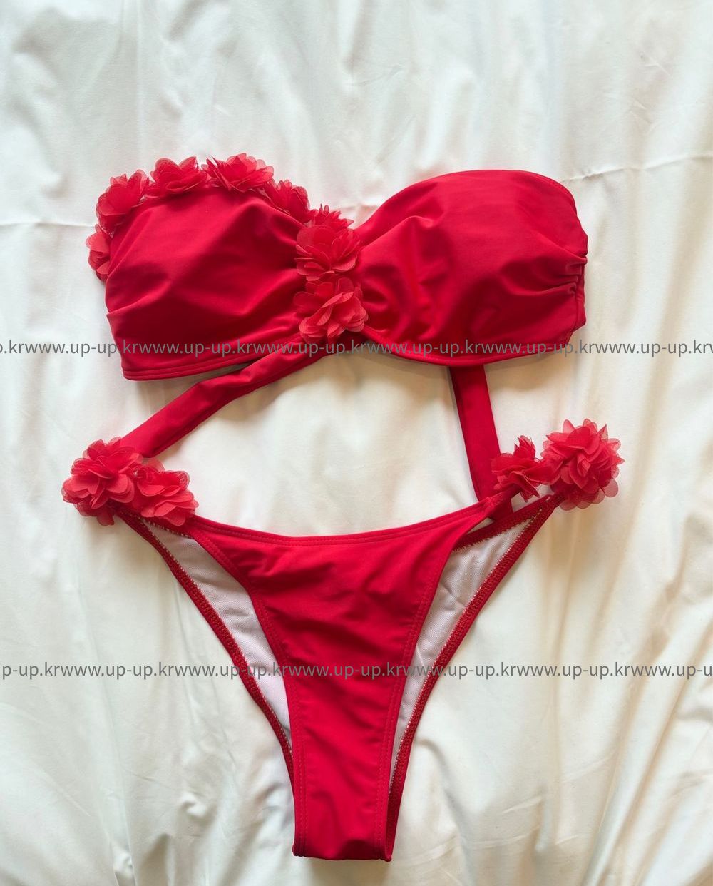 플라워 레드 탑 비키니