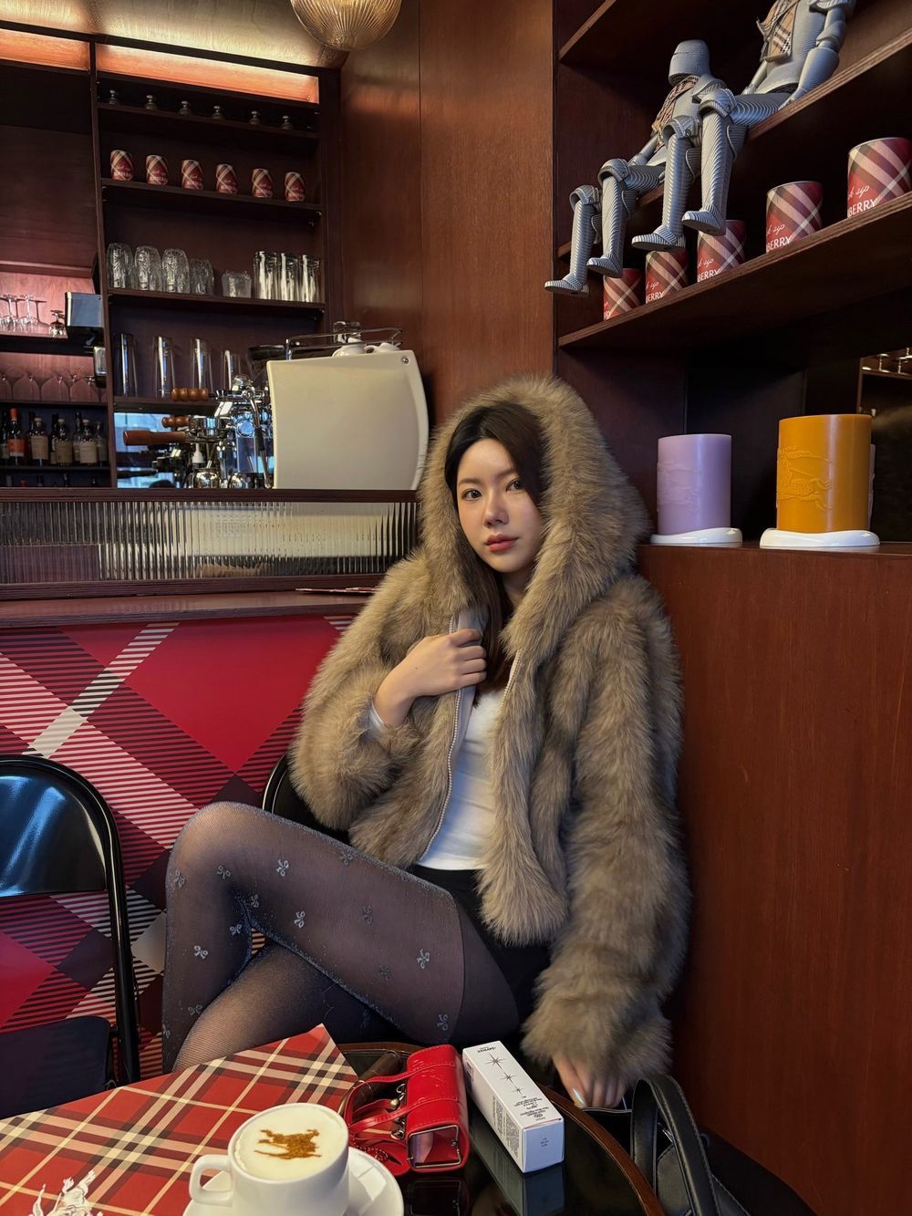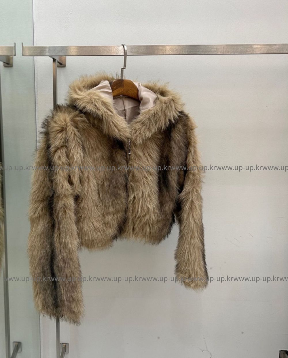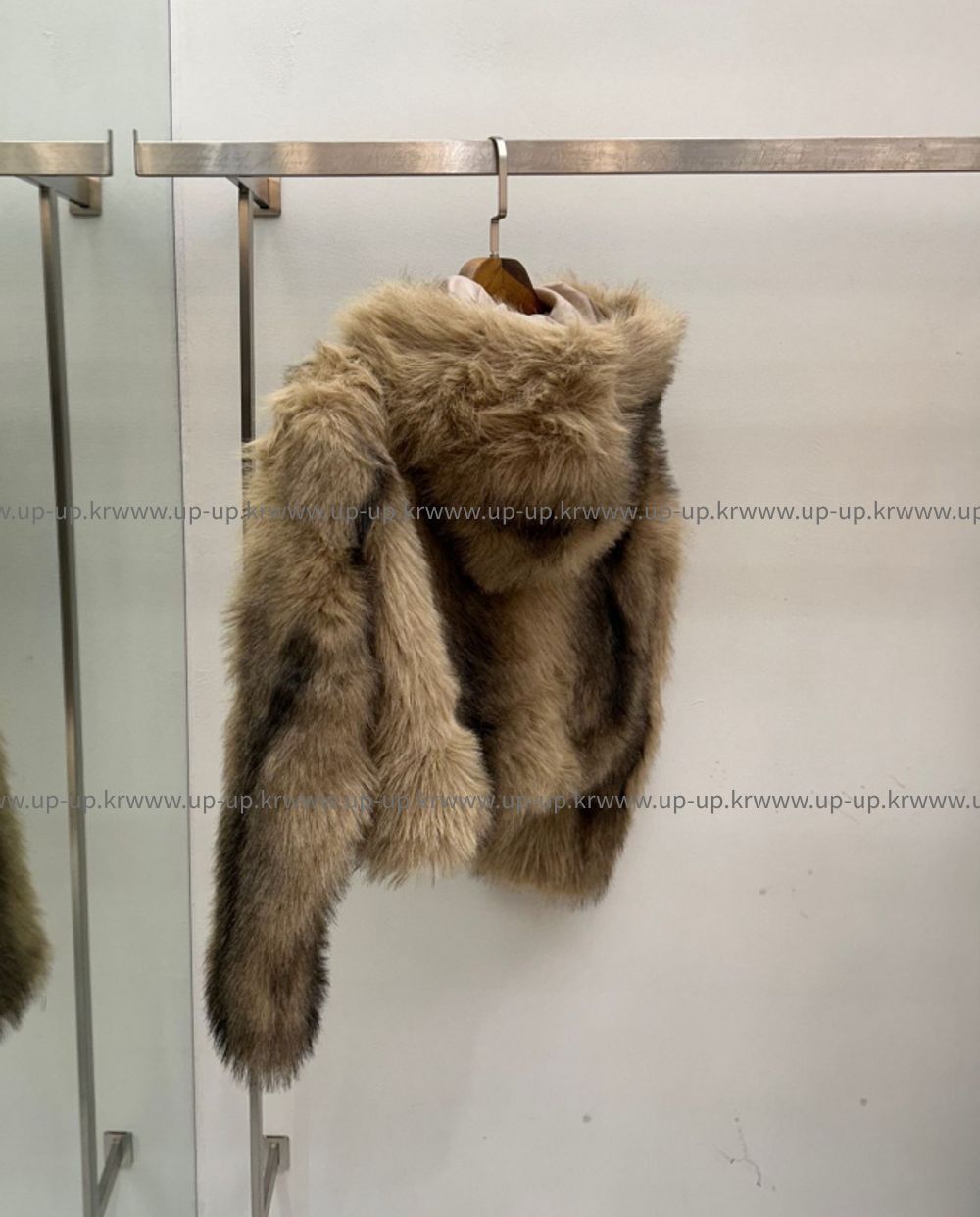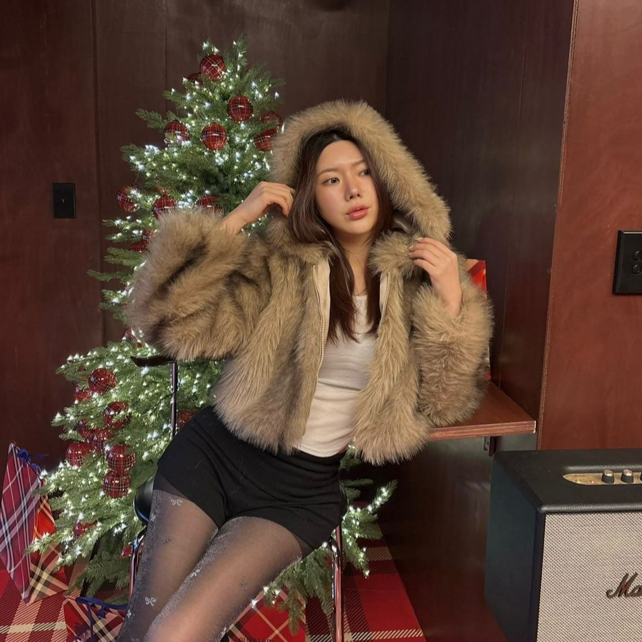 브라운 믹스 퍼 후드 자켓