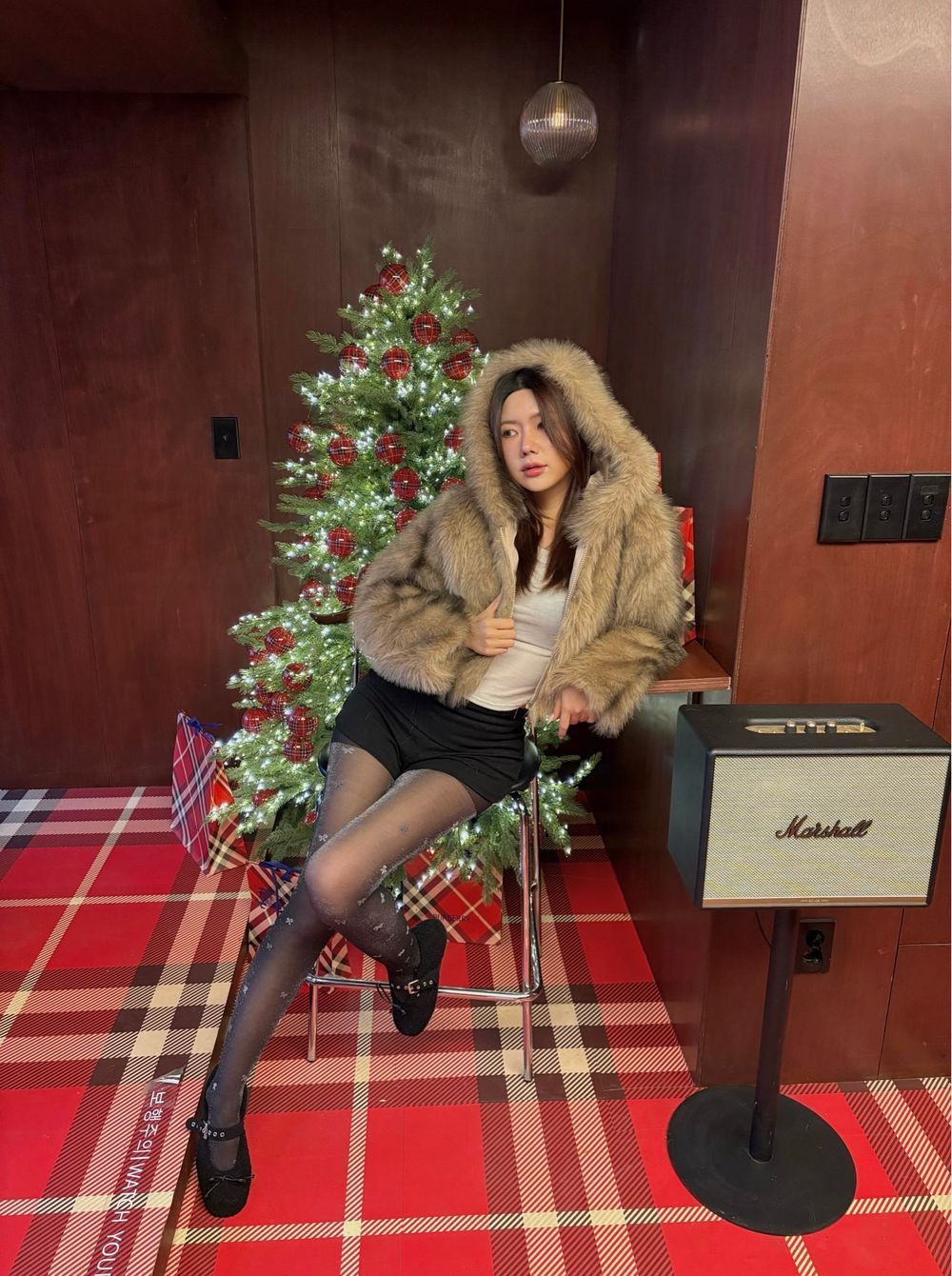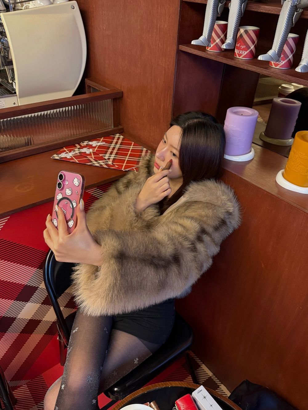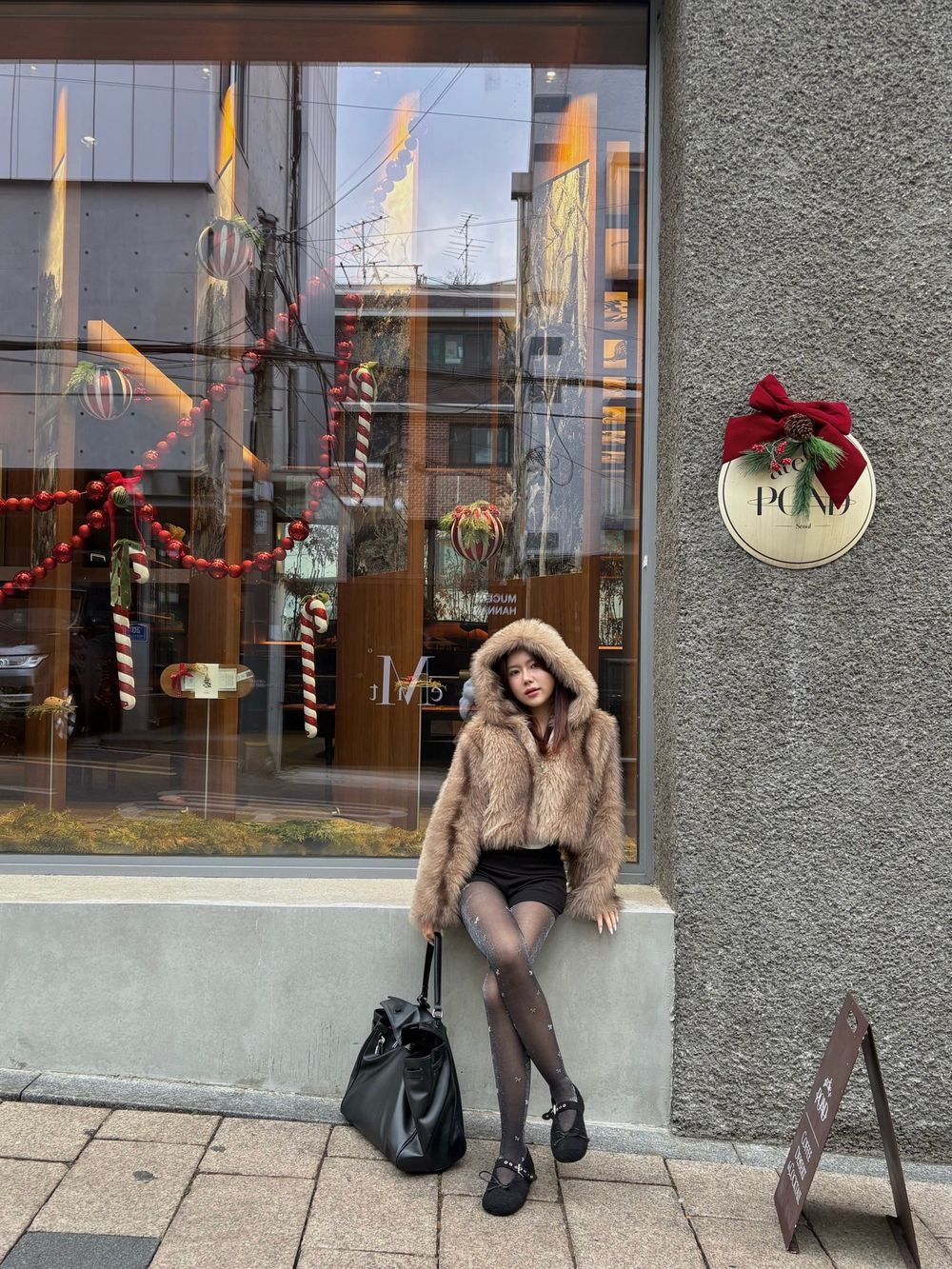브라운 믹스 퍼 후드 자켓