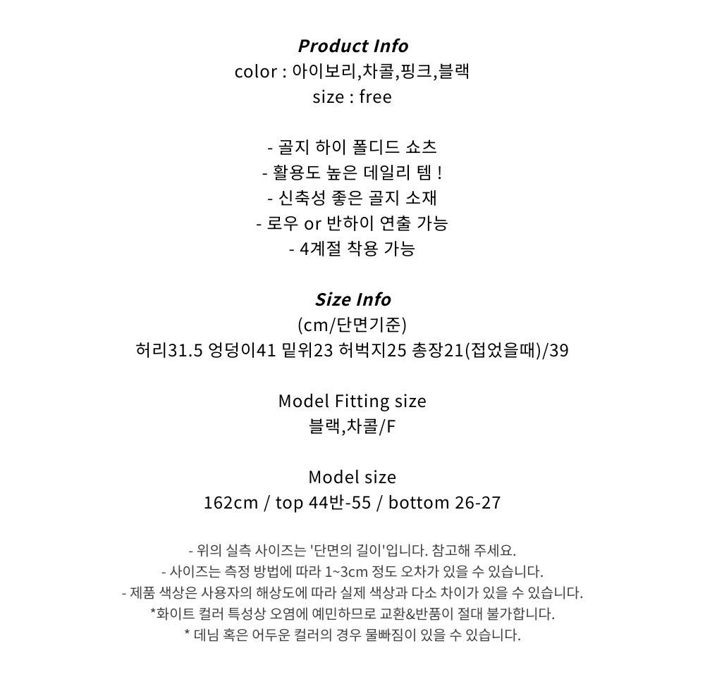 골지 하이 폴디드 쇼츠 (4color)