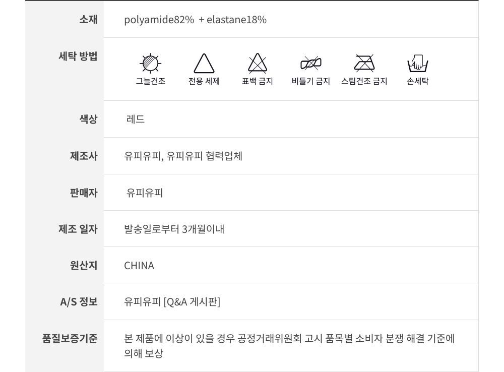 세탁방법 및 취급시 주의사항