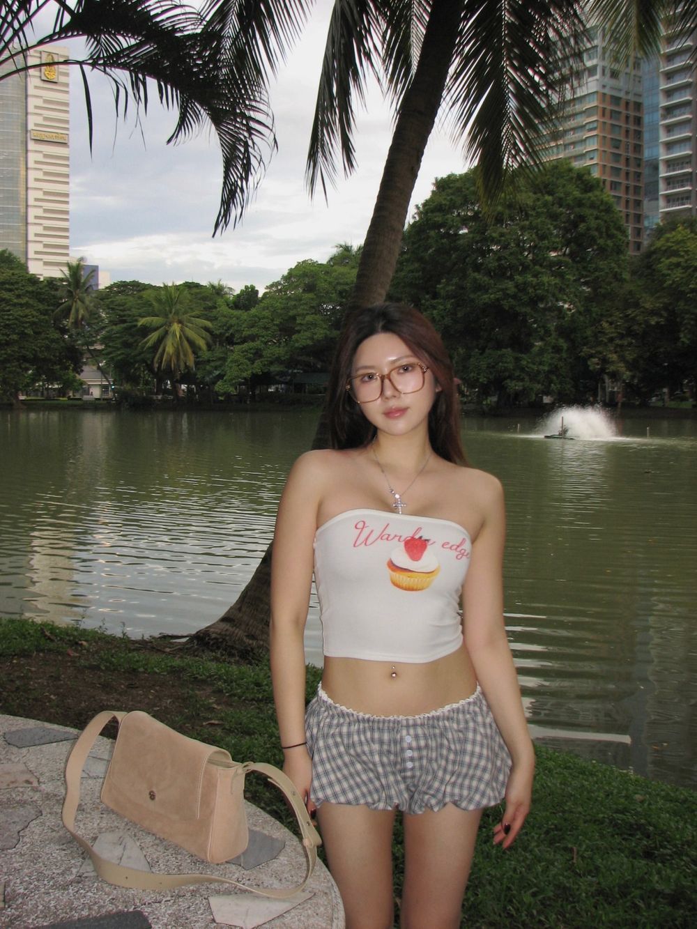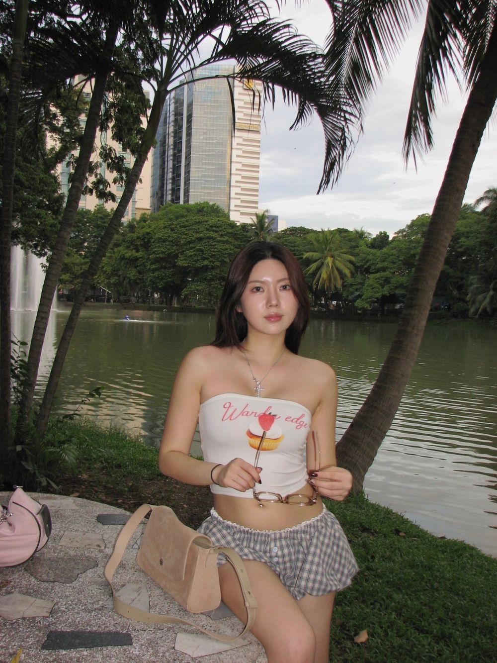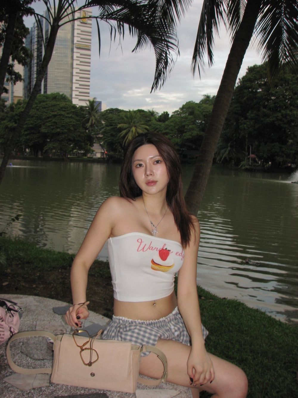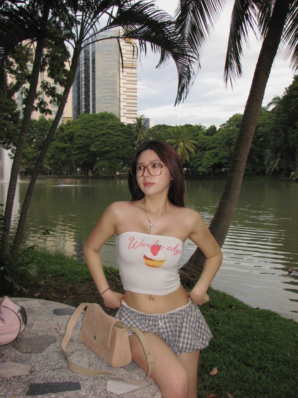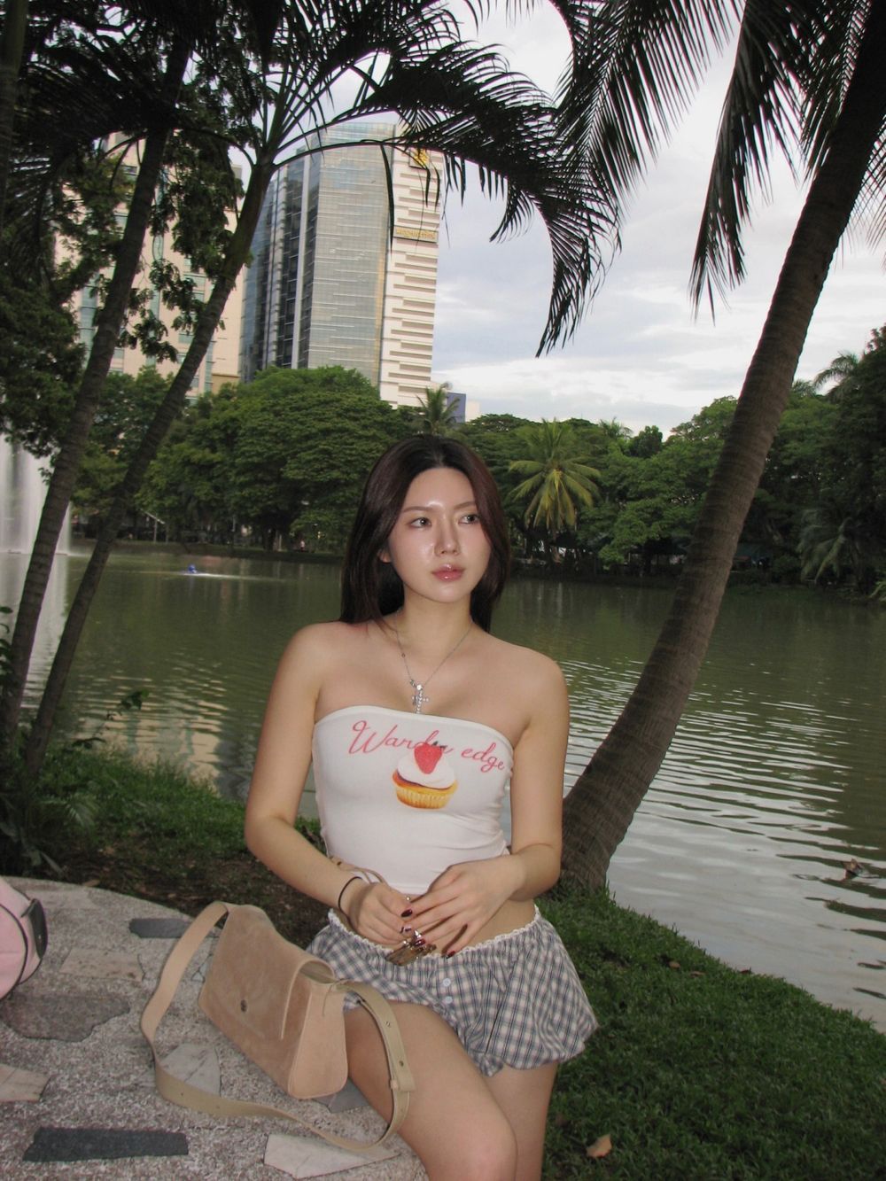 체크 로우 펌킨 쇼츠 팬츠