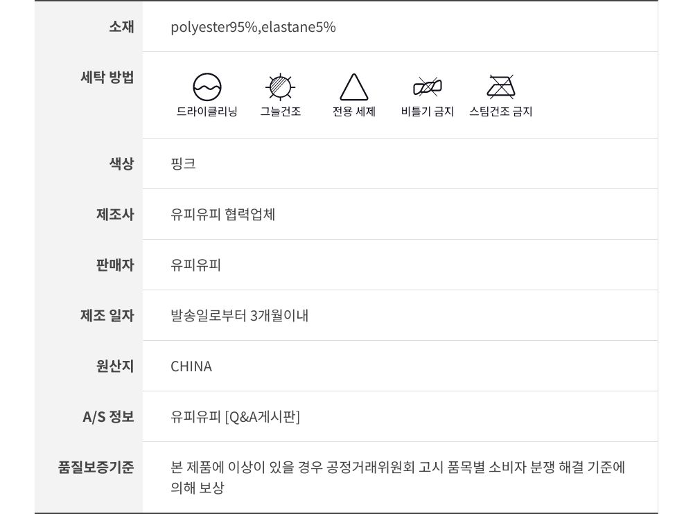 세탁방법 및 취급시 주의사항