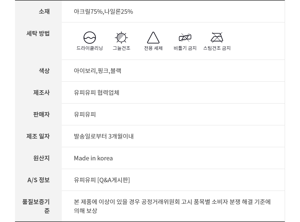 세탁방법 및 취급시 주의사항