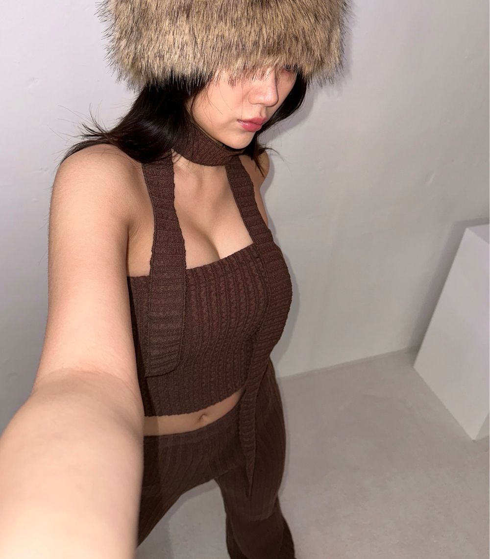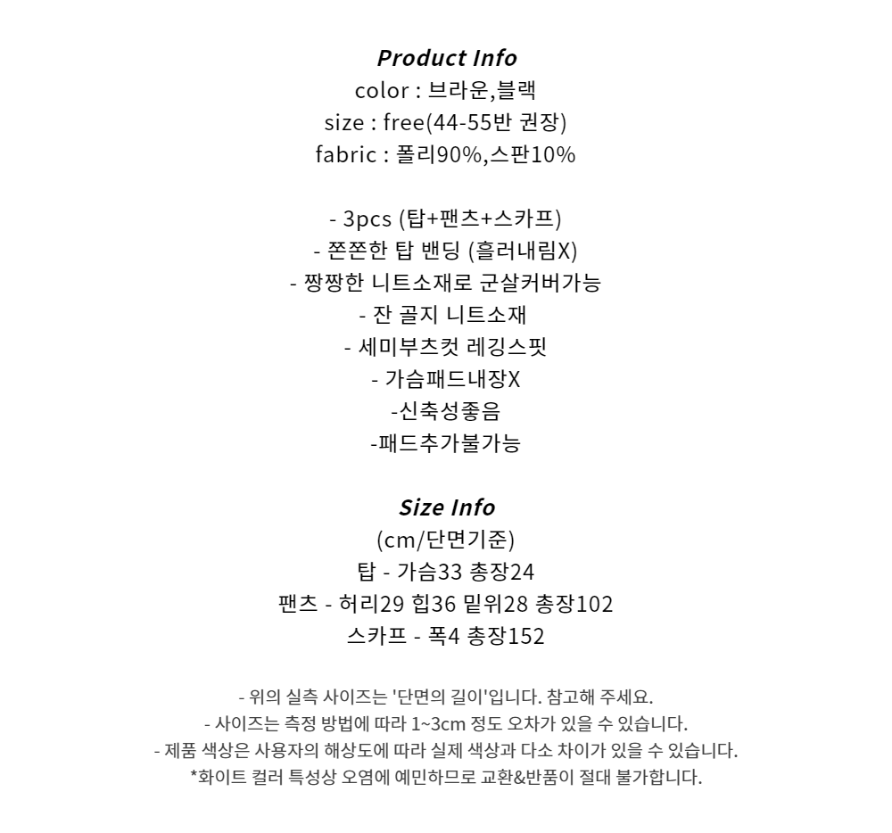 (3pcs) 스카프 니트 탑 팬츠 set (2color)