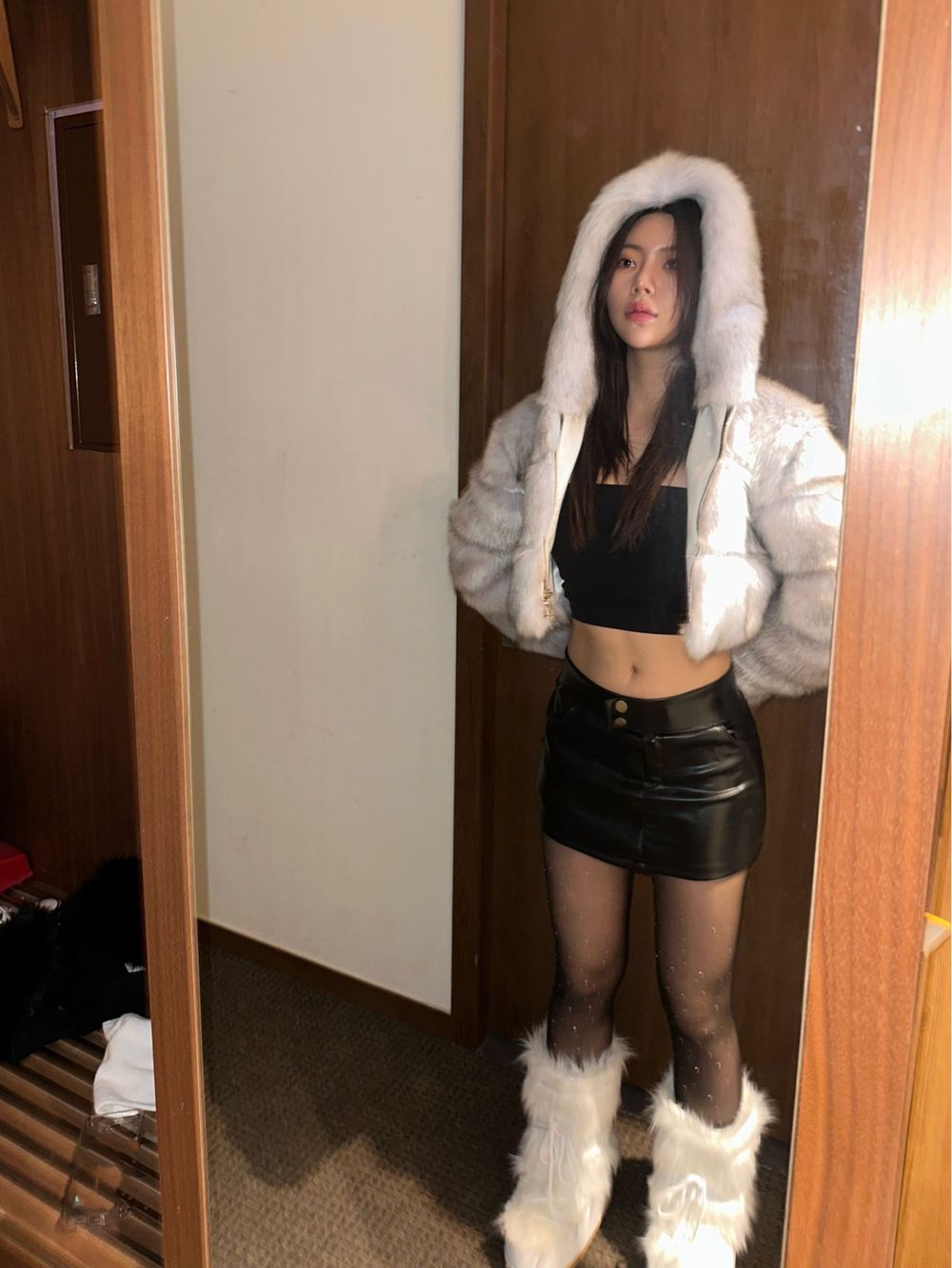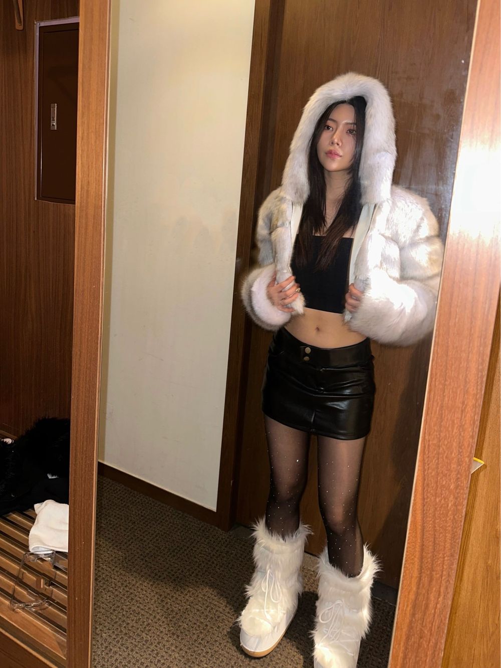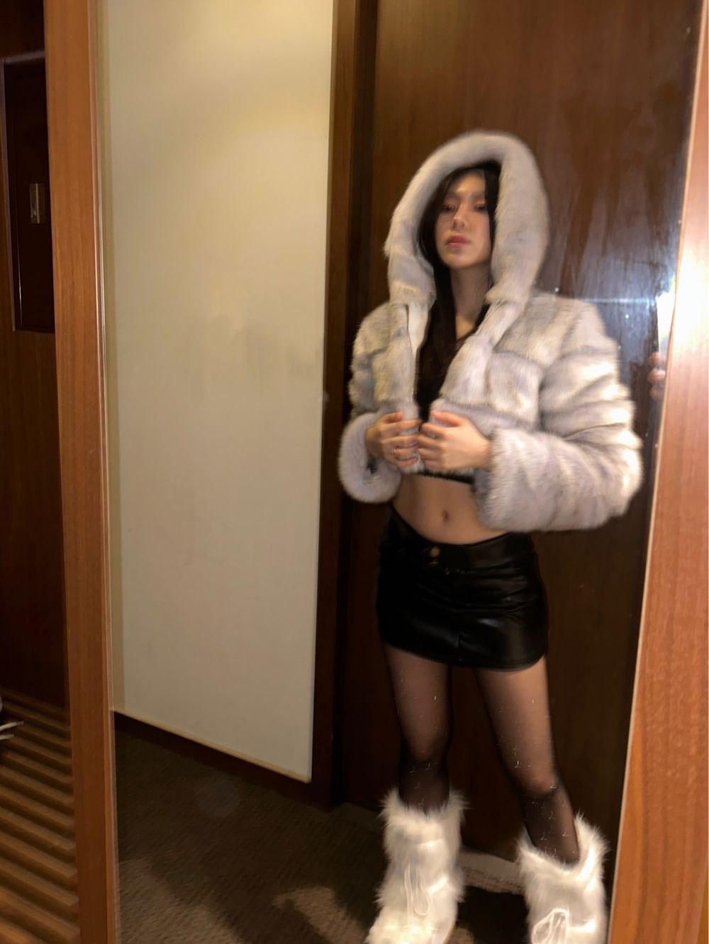 (수입/소량당일) 크롭 폼폼 후드 퍼 자켓 (3color)
